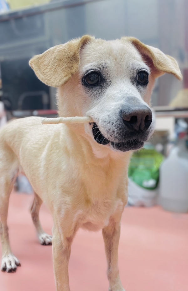 【アロマ】取られたくないもの、お気に入りの物はひとりで楽しみたいタイプのアロマ🦴🐕おもちゃをあげると病院の隅っこや自分の部屋に戻ってこっそり遊んでいます😊🍀(扉が閉まっていると無言で扉前に立っています😶💦)ガムなどの長く食べるタイプのおやつも一緒で、写真を撮ったこの日もひとりで楽しむための場所を探してウロウロ🔁🤔ガムを咥えながらるんるん🎶で院内を小走りする、とっても可愛いアロマおばあちゃんなのでした🐶💕